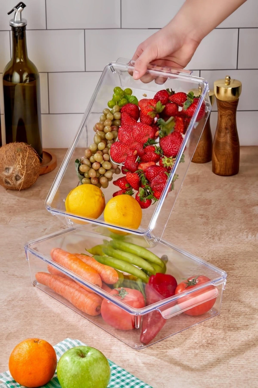 Ürün Hikayesi: Şeffaf akrilik malzemeden üretilen bu MIX set; 3 lt, 4,5 lt ve 6 lt hacimlerinde üç organizer içerir. Farklı boy seçenekleriyle buzdolabınızı düzenlemenize yardımcı olur, yiyeceklerinizi kolay erişilebilir ve hijyenik şekilde saklamanızı sağlar.