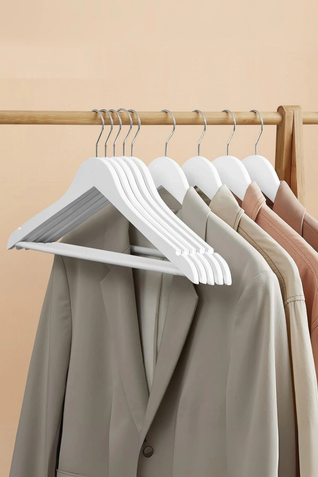 Doğal görünümüyle şıklık katan 6’lı ahşap görünümlü kahve askı seti, gardırobunuzda estetik bir düzen sağlar.