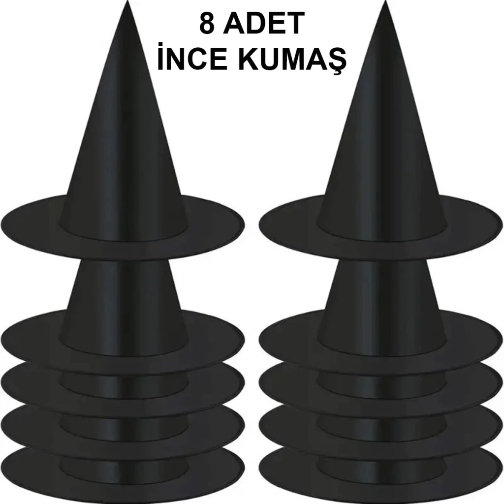 8 Adet Siyah Cadı Şapkası – Yetişkin Çocuk Kostüm Aksesuarı