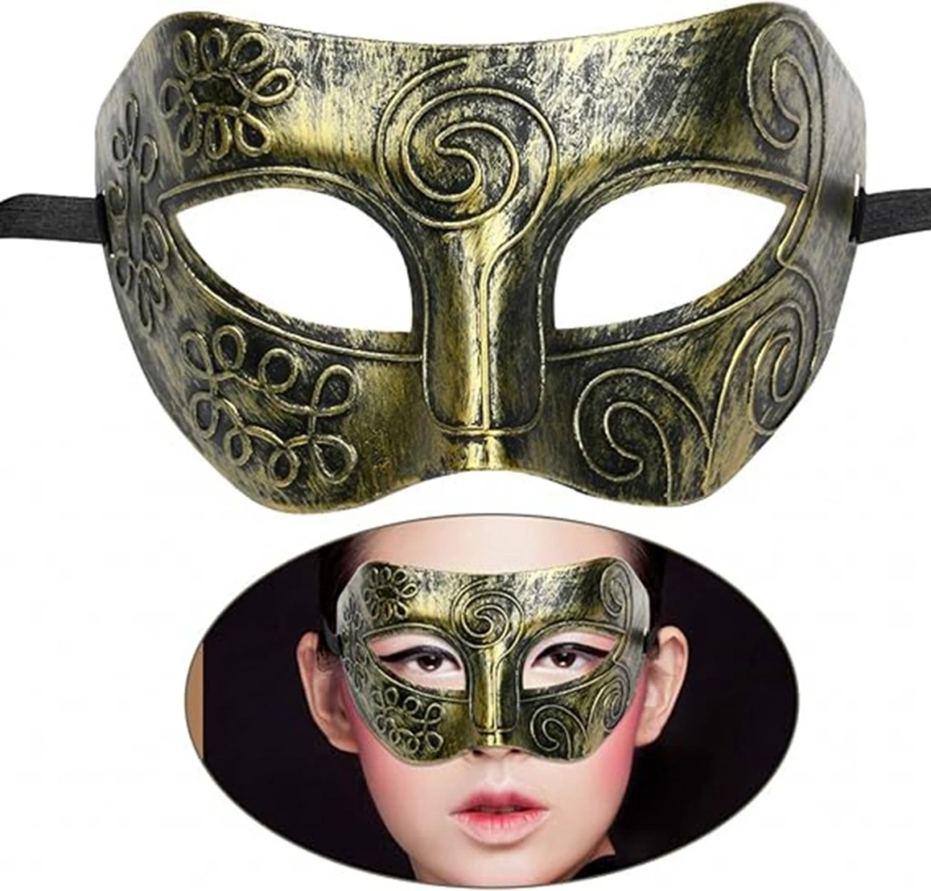 ???? Stilinizi tamamlayın ve etkileyici bir görünüm elde edin Vintage ve gotik dokunuşlarıyla tasarlanan bu altın eskitme maske, herkesin ilgisini çekecek.