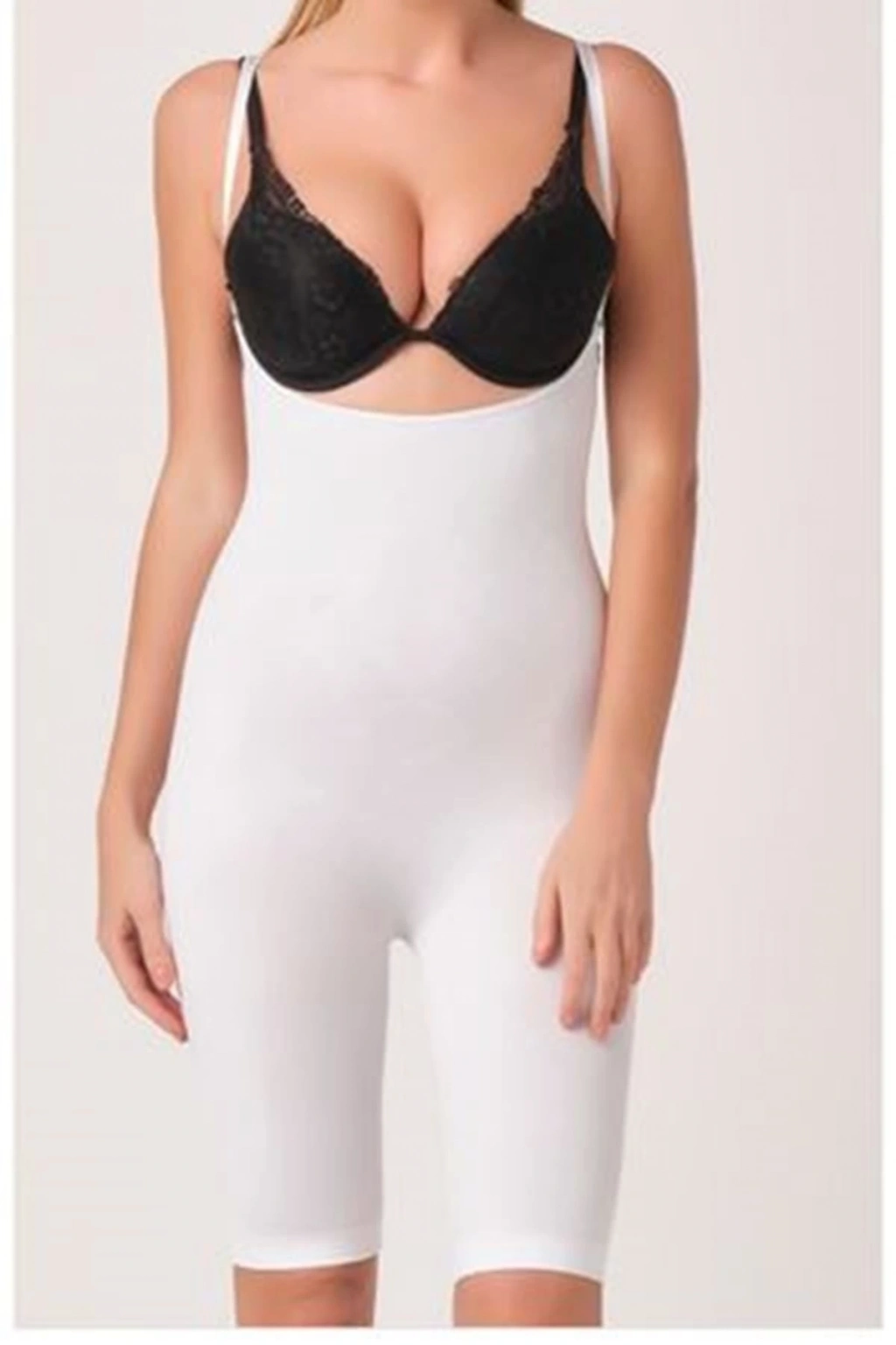 Beyaz Kadın Paçalı Boy Dikişsiz Korse - 751