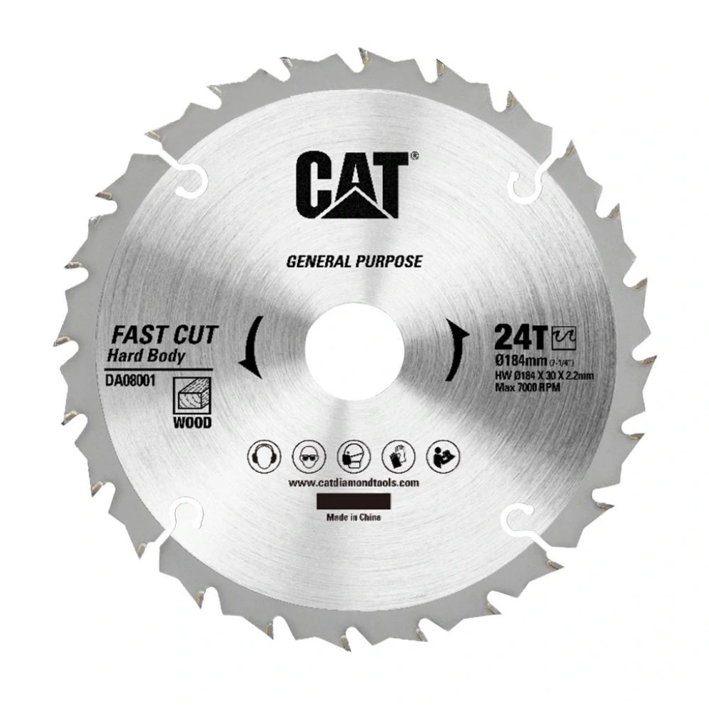 • CAT DA08001 184x30mm Ahşap Kesme Elmas, Daire Testere Bıçağı 24 Diş
