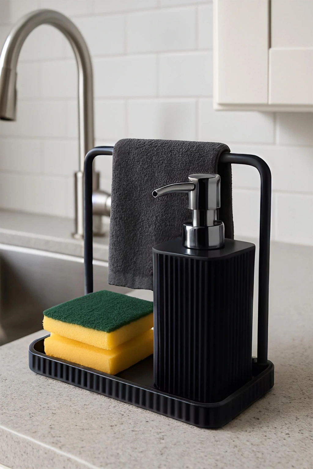 Ürün Hikayesi: Gri rengiyle modern banyolara uyum sağlayan bu sıvı sabunluk, havlu asma aparatıyla fonksiyonel kullanım sunar. Zarif tasarımıyla hem şıklık hem de düzen sağlar.