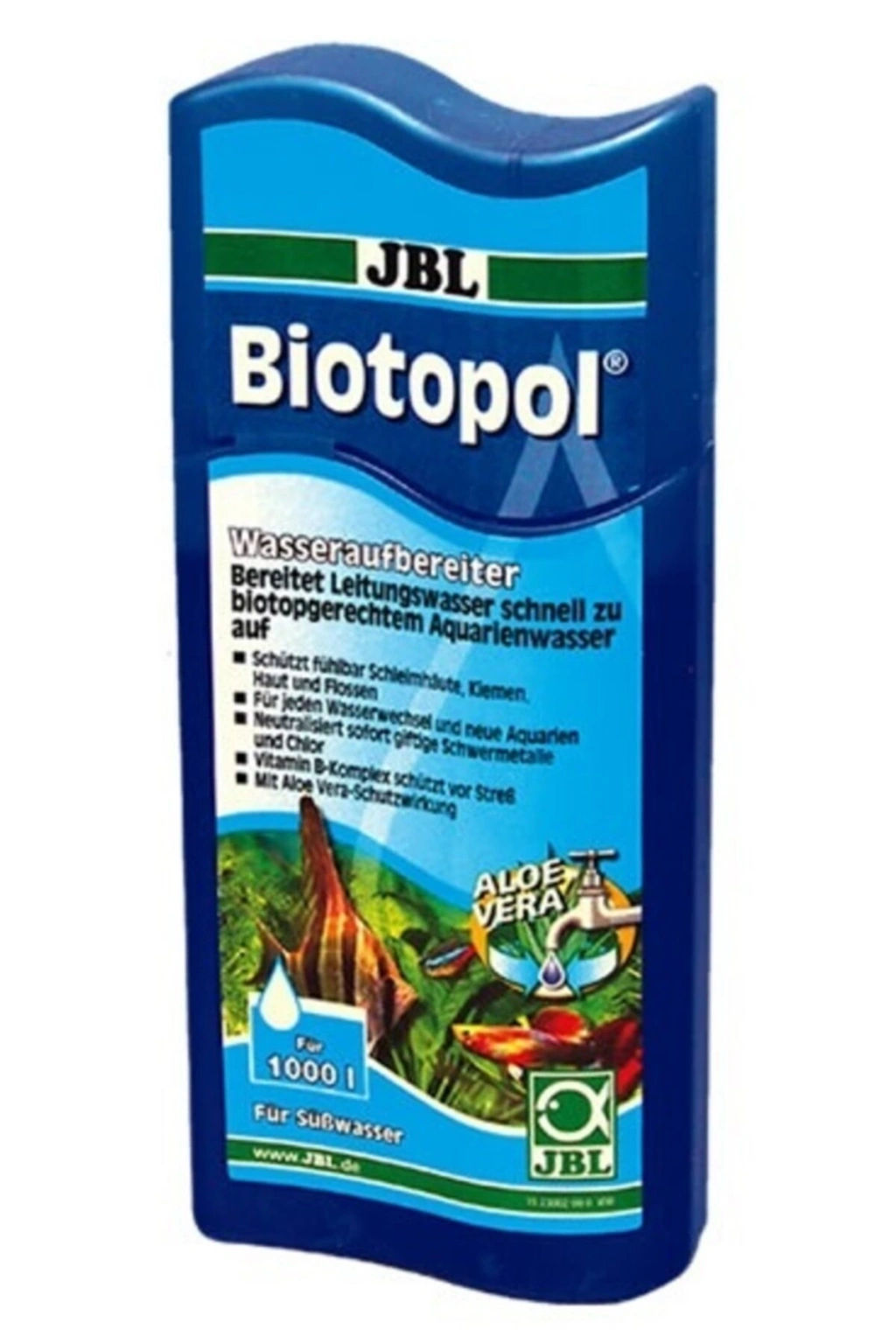 Birçok akvaryum sever musluk sularının klorlanmadığını zanneder. Fakat bu yanlıştır: su evinize ulaşırken birçok farklı kanaldan geçtiği için içine yüksek miktarda klorin atılmaktadır. Musluk suyuna klor katılmamış olsa bile, suyun dezenfekte edilmesi ve içilebilir hale gelmesi için birçok farklı madde atılmaktadır. Bu durumda, ağır metallerin etkisiz hale getirilmesi için JBL Biotopol kullanılmasını şiddetle tavsiye ederiz. JBL Biotopol'ün diğer bir önemli özelliği de aloe vera (bitki özü) içermesidir. Hem insan cildine hem de balıklara yararı olan bir bitki özüdür.