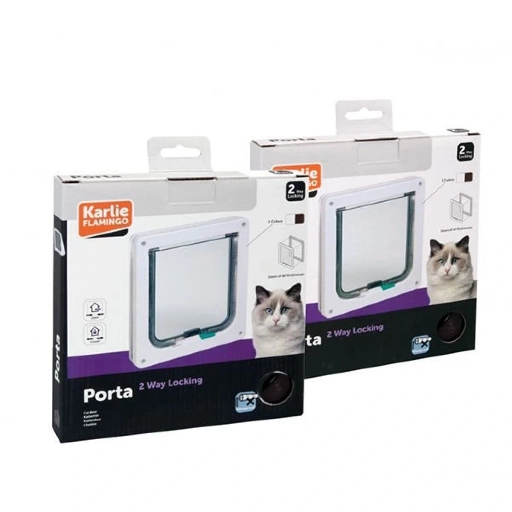 Cam duvarlar ve kapılar hariç tüm kapılarda kullanılabilecek çift yönlü kedi kapısıdır.