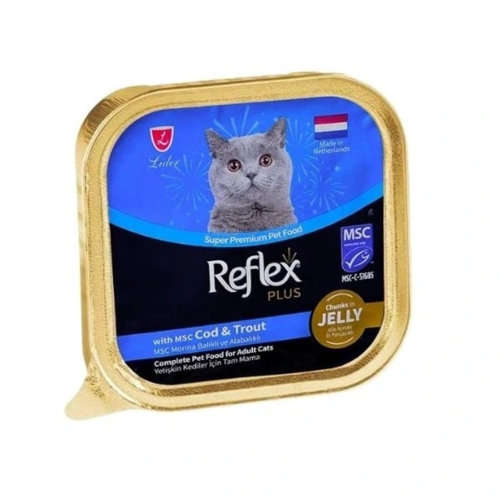 Reflex Plus Jöle İçinde Parça Morina ve Alabalıklı Yetişkin Konserve Kedi Maması 85 Gr