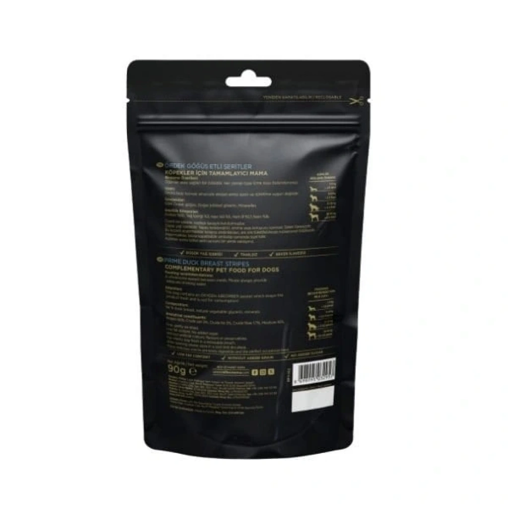 Reflex Snackies Natural Ördek Göğüs Etli Şerit Tahılsız Köpek Ödül Maması 90 Gr: Köpeğinizin sağlıklı ve lezzetli bir ödül deneyimi yaşaması için özel olarak tasarlanmış bir üründür. Yüksek kaliteli ördek göğsü ile zenginleştirilmiş formülü, köpeğinizin kas gelişimine katkı sağlar ve günlük beslenmesine tat katarken aynı zamanda doğal içeriklerle destekler.