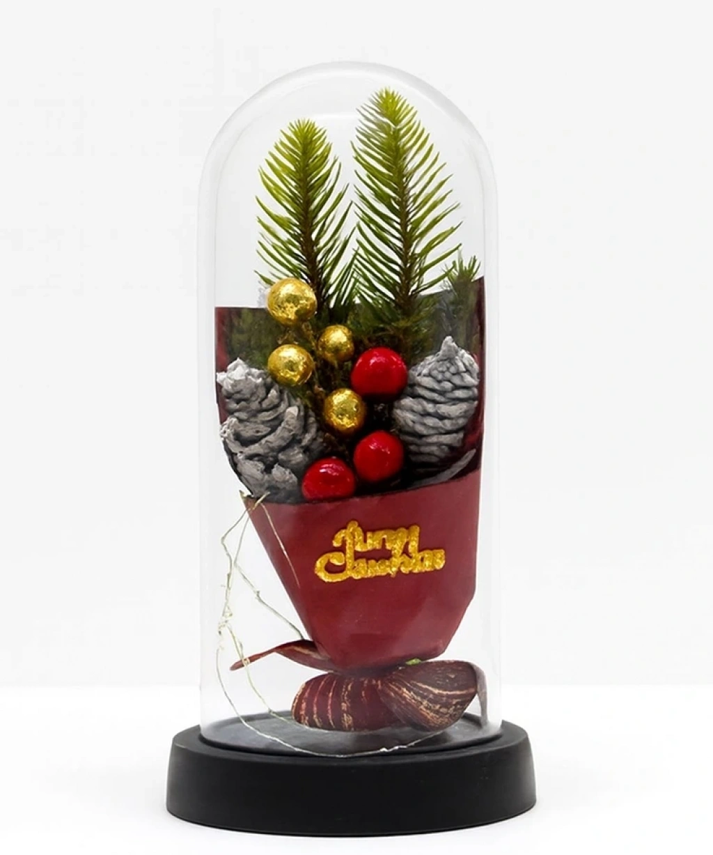 Yılbaşı Temalı Işıklı Dekoratif Cam Fanus Alk5082